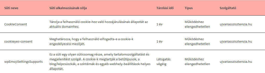 • A működéshez szigorúan szükséges cookie-k: Ezek a cookie-k a weboldal használatához nélkülözhetetlenek, és lehetővé teszik a weboldal alapvető funkcióinak használatát. Ezek hiányában az oldal számos funkciója nem lesz elérhető az Ön számára. Ezen típusú cookie-k élettartama kizárólag a munkamenet idejére korlátozódik.